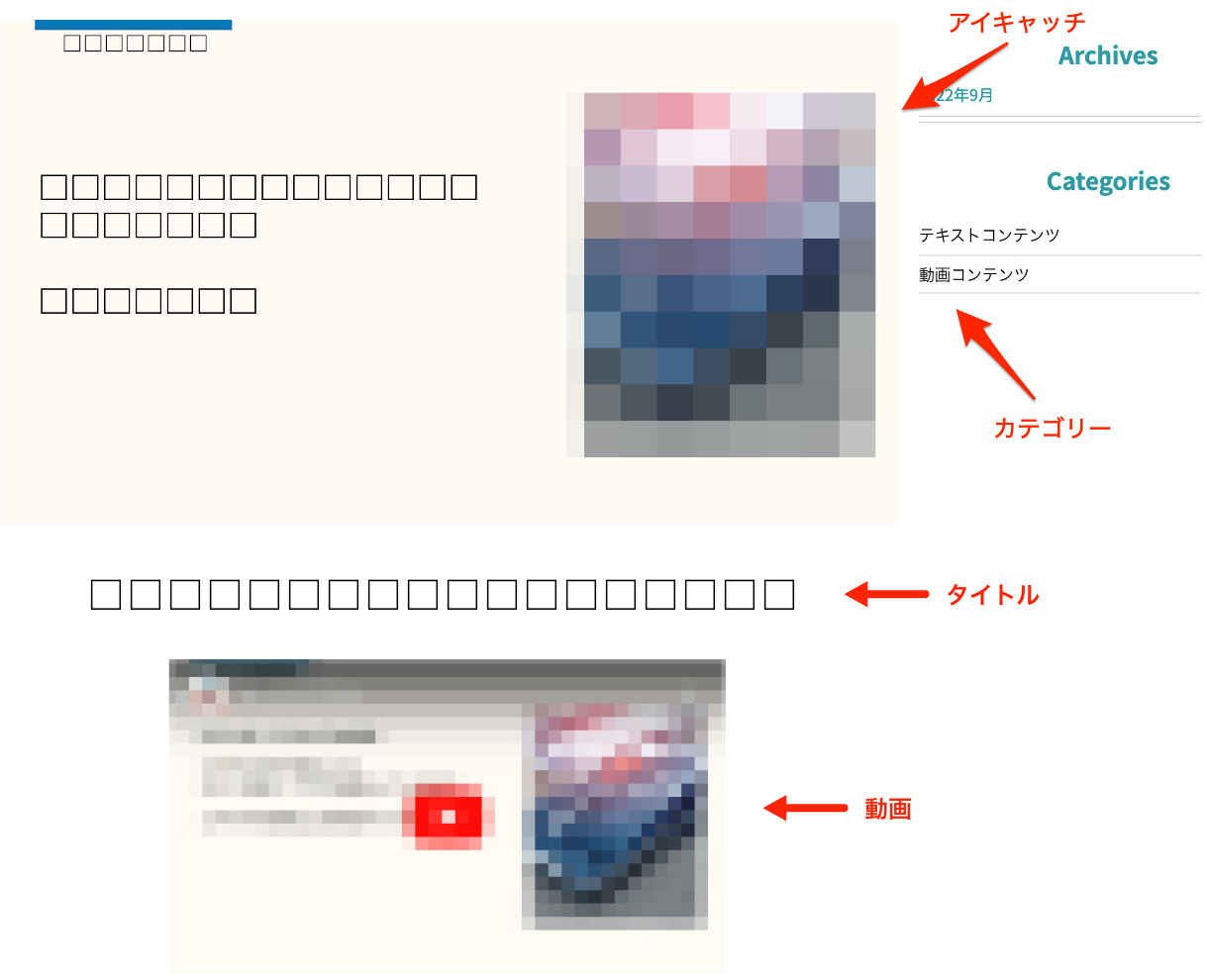 - アイキャッチ画像(YoutubeリンクURLを埋め込むと自動でアイキャッチ画像が設定されます)