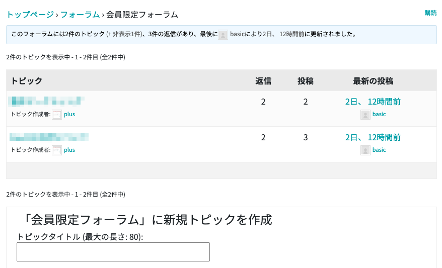 初期状態で「会員限定フォーラム(掲示板)」というフォーラムが一つ用意されています。