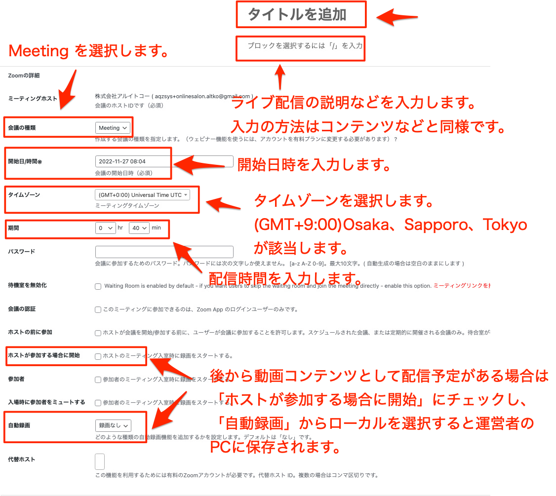 運営管理画面から【ライブ配信管理】>【配信予定追加】をクリックすると新規追加ページが開きます。